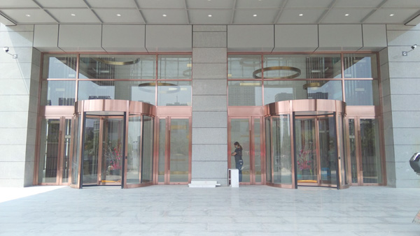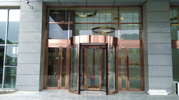彩运网在漢庭酒店建造了德國多瑪三翼帶展臺旋轉門,門框由鋁制成,展廳由斷橋鋁制成,外部面板由玫瑰金不銹鋼板制成,與整體裝飾風格相匹配。地面彈簧門兩側采用國際品牌門控五金德國多瑪地彈簧,三翼帶展臺旋轉門整體特點高平整度,美觀大方,結實耐用,使用壽命較長!